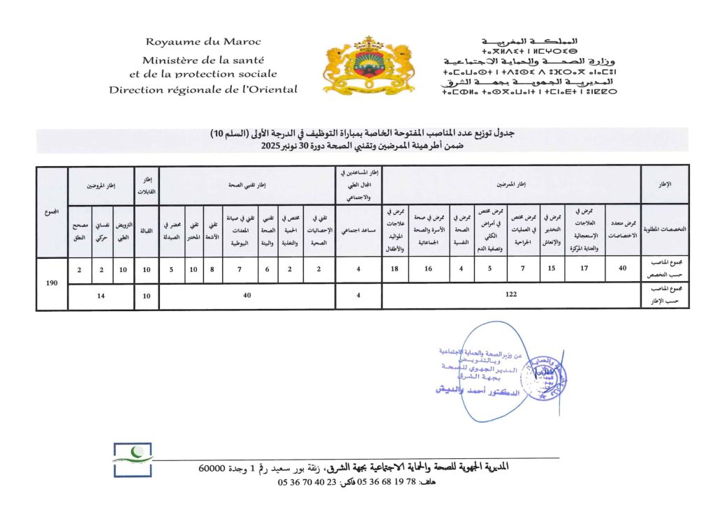 إعلان مباراة توظيف 190 موظفًا بقطاع الصحة في جهة الشرق 2025