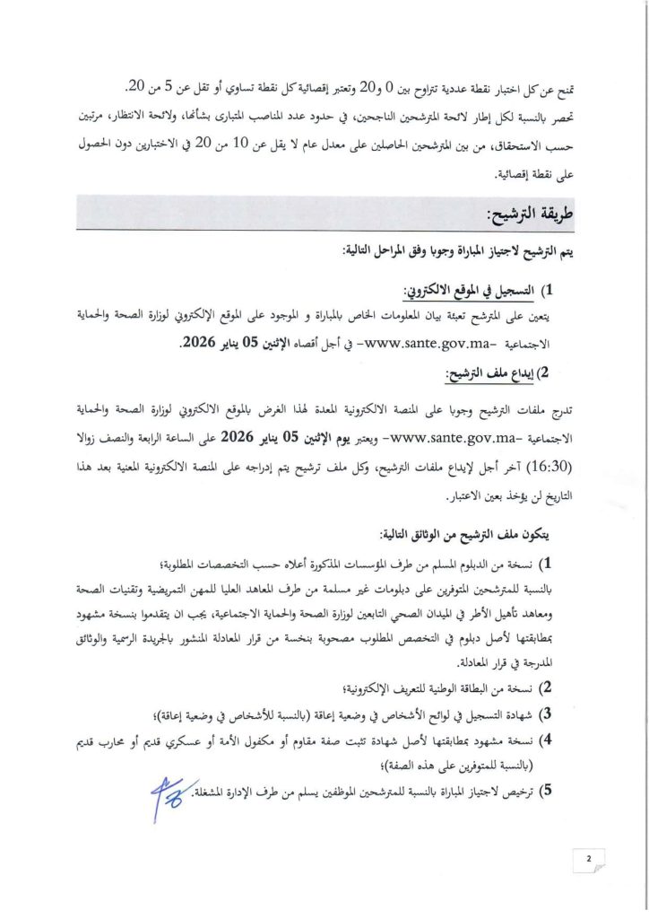 Les modalités complètes de candidature ainsi que les documents requis sont disponibles sur le portail officiel du Ministère de la Santé.
